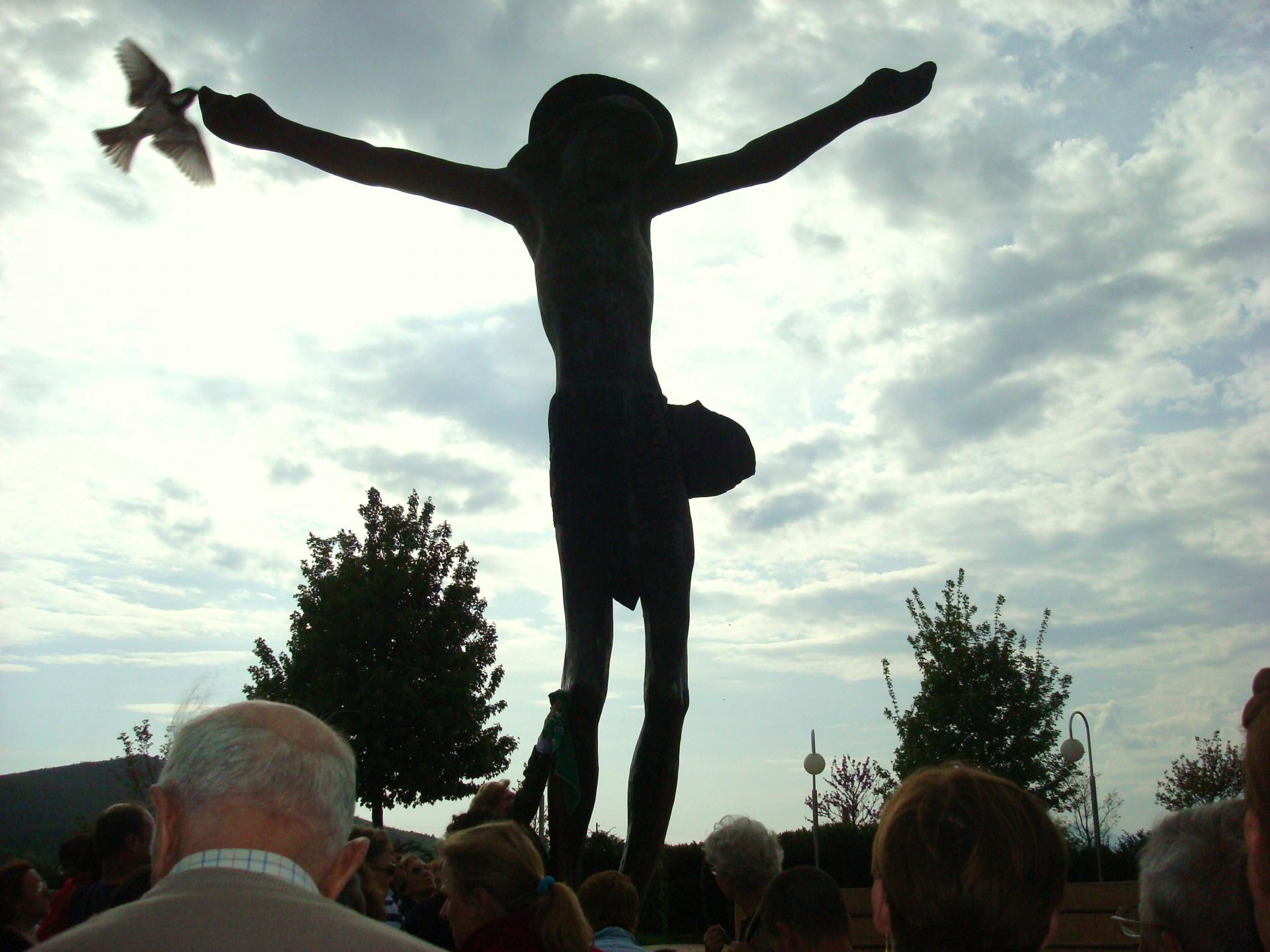 Medjugorje 2012 : Sur cette photo vous apercevez une colombe blanche, qui n'est pas présente lors de la prise de cette photo..Cette statue du Christ est haute d'environ 7,5 m..Le rapport de grandeur entre le Christ et la colombe devient alors très interessant car le bras du Christ doit mesurer environ 2,50 m. et la colombe !!!!
